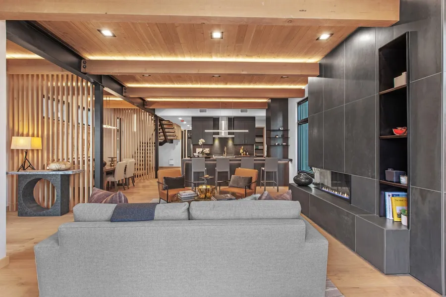 Urban Luxe Modern living at its finest right in downtown Coeur d'Alene. Better than a luxury condo as you have your own elevator, your own deck & garage. COMES FURNISHED & MOVE IN READY w/high end furniture & art. Private and ultra convenient. Easy walk to restaurants, shops, Sanders Beach, Tubbs Hill, CdA Lake & more! Live well with open design living and uber luxury finishes and features. Linear gas fireplace, floating vanities, T&G ceilings, Thermador appliances, 2 refrigerators, 6 burner dual fuel range, 4 Bedrooms (3 master suites) plus den flex space, office & a chic upper level Roof Top deck with BBQ grill, a bar with ice maker, wine fridge & more. Boasting 3600+ SF of private home living with the easy maintenance free 'lock & go' of a condo. Redefining modern living with Smart home technology, highest quality materials and convenience of the busy lifestyle retreat for connoisseurs of life!