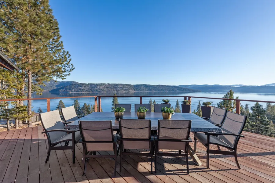 Mountain Modern Beauty in the Prime coveted lower Onyx Circle at the GOLF and LAKE CLUB at BLACK ROCK- Idaho's premier private Jim Engh designed course. Boasting unobstructed LAKE COEUR D ALENE PANORAMIC VIEWS and MODERN updates in 2022. FURNISHED and MOVE-IN READY! Over 4600 SF with main floor Primary Bedroom Suite, and Open Plan luxury living. 4 Bedrooms (2 are Suites), Chef's gourmet kitchen open to the views and soaring vaulted ceiling in the great room, complete with stone floor-to-ceiling wood burning fireplace, whiskey bar, bonus rooms and walkout lower level for all the guests! Enjoy the new Deck, new level backyard with the most stunning lake views at Black Rock! Updates include Smart home technology, new LED lighting and contemporary light fixtures throughout, freshly paint, outdoor staining, new DECK, new Cooktop, Cabinets, landscaping and so much more! Privacy, serenity and l...