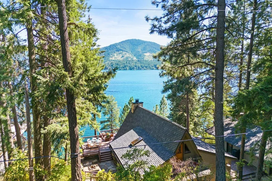 Absolutely Charming Hayden Lake cabins, (yes, there are two of them!) located only minutes to town with deep, clear water and endless lake views. This property offers a main A-frame cabin with 1 bedroom, 1 bathroom, and loft area with 2 beds, a spacious kitchen and stone fireplace, and the second cabin has a living area, bunk room, bathroom, and kitchenette. Connecting these two delightful cabins is an enormous deck overlooking the sparkling waters of Hayden Lake with a majestic mountain backdrop. Recent updates include new carpet, light fixtures, plumbing fixtures and vanities in both bathrooms, a brand-new dock, and a sophisticated water filtration system. Located on city services and only minutes to all amenities, this property offers a rare opportunity with potential for expansion or is charming as can be just as it is! This is a perfect property to make family memories for generatio...