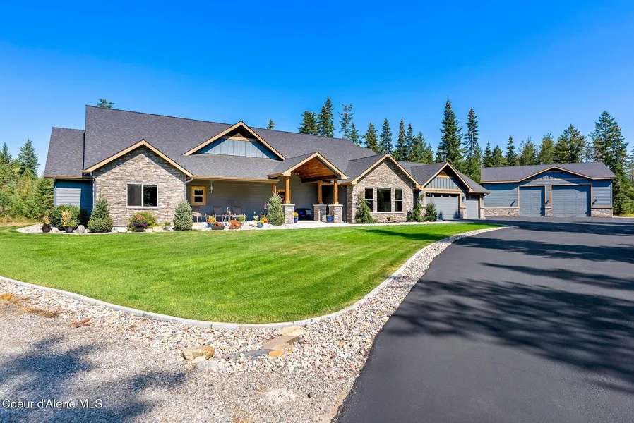 Rare all single level home with 3 ensuites and half bath on 4.87 acres in The Glades. Custom-built 3,605 sq ft home blends luxury and functionality. Features include vaulted ceilings, floor-to-ceiling masonry gas fireplace, chef's kitchen with Monogram appliances, leathered granite countertops, in drawer microwave, and dual walk-in pantries. Spacious bonus/game room and laundry room. Home is hard wired for internet. Covered porch and patio, fenced yard, gas BBQ hookup. Finished stick-built 48'*40' RV shop with office, half bath, 30-amp power, wired for 220, and covered lean-to. 10' x 20' shed. Home is wheelchair accessible (no steps). Other amenities: Radon Mitigation, Cummins generator which runs house and shop in case of power outages, and additional 30 amp power and water hookup for outside RV guests. Horses allowed. Just 20 mins to Coeur d'Alene. Enjoy wildlife visits, and endless tr...