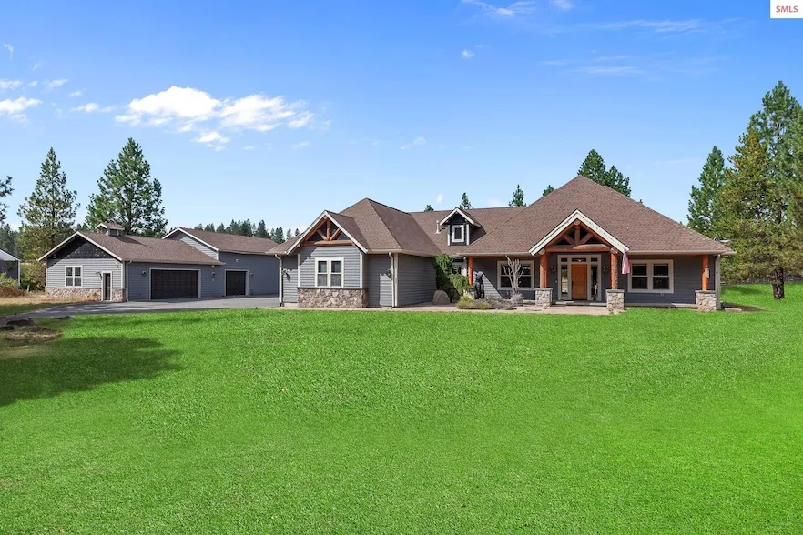 Scenic Hayden setting near English Point, Hayden Lake, and Golf! Custom built home on nearly 5 acres with a 30x70 dream shop! Main floor living areas include a great room w/gas fireplace & built-in cabinetry, formal & informal dining rooms, gourmet kitchen w/ marble counters, large island and new Wolf appliances. Primary suite w/ensuite bath & gas fireplace plus 2 additional bedrooms, full bath, half bath, pantry & laundry room. The 2nd floor boasts a large family room with wet bar & additional full bath that could be a 2nd bedroom Suite. Large covered back patio with firepit, 3 car attached garage and paved driveway. Partially fenced, level meadow with water feature and mature landscaping surrounds the home. New whole house generator, furnace and heat pump plus many additional upgrades. This is the North Idaho dream!