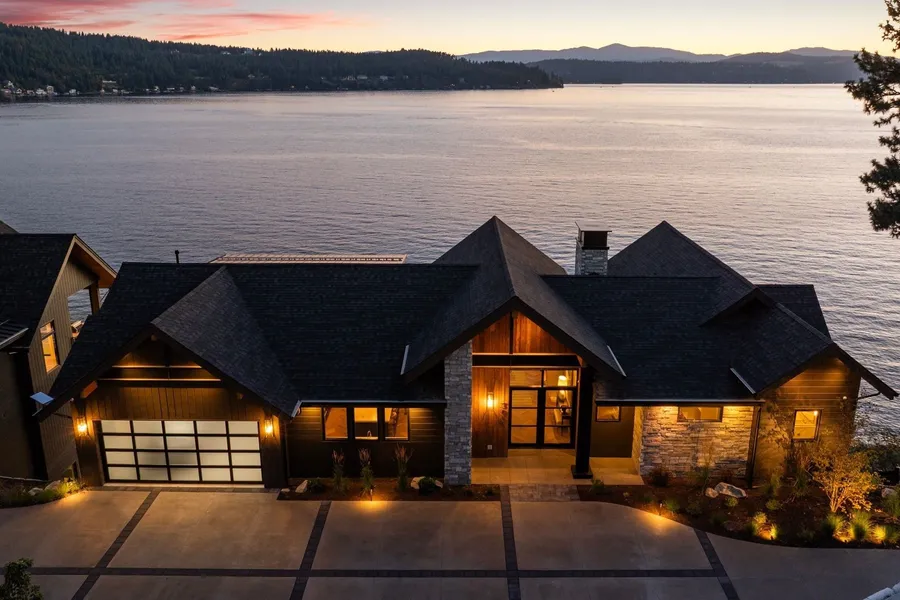 Experience the ultimate in luxury lakefront living with Estate 28, a 6,700+ sq. ft. architectural showpiece perfectly positioned to capture sweeping views of Lake Coeur d'Alene. Situated in the coveted Bennett Bay area, this exceptional home offers a private dock with covered boat slip, expansive outdoor living spaces, and premium amenities at every turn. The grand great room features soaring ceilings, a dramatic fireplace, and walls of windows framing the lake. A gourmet kitchen with high-end appliances, walk-in pantry, and large island flows seamlessly into the dining and entertaining spaces. Wine enthusiasts will love the climate-controlled wine vault with tasting hall, while a private movie theater, two full bars, and a large workout room provide endless entertainment and recreation. The luxurious primary suite is a cozy retreat with a spa-style bath, walk-in closet, and private deck...