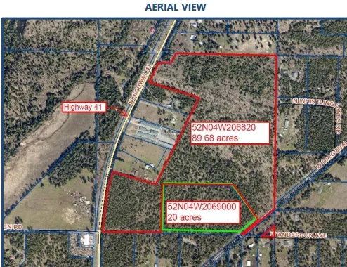 An extraordinary opportunity to acquire 110 acres of flat, timbered land positioned directly in the growth path of North Idaho. Located along Highway 41 and Diagonal Road, the property offers excellent access and visibility just 2 minutes from downtown Rathdrum and 25 minutes from Coeur d’Alene.