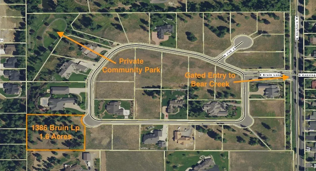 LARGE 1.6 ACRE ESTATE BUILDING SITE IN TOWN! Upscale gated community of Bear Creek Estates. Plenty of room for large home, outbuildings and/or pool. Treed and private corner lot. Just steps from two golf courses and a 3 minute drive to Honeysuckle Beach and boat launch. Difficult to find a nicer building lot with such close proximity to all Hayden has to offer!