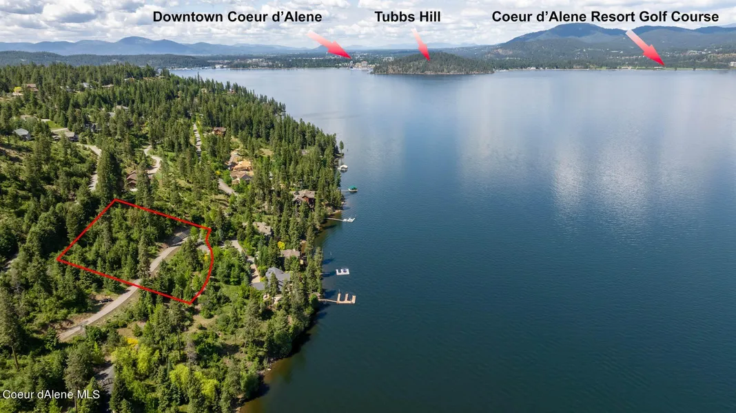 Incredible views of Lake Coeur d'Alene from this oversized lot in gated waterfront community! Large 1.21-acre parcel is perfectly situated in the sought-after gated community of Stevens Point and Harbor View Estates. Driveway in, ideal topography, mature timber, community water, community sewer, private beachfront & marina with possible boat slips available, paved maintained roads offer an easy 20-minute drive to town. Unmatched, panoramic lake views spanning from downtown Coeur d'Alene to the CD'A Resort Golf Course, Arrow Point to Harrison, making this lot one of the most breathtaking build sites available!