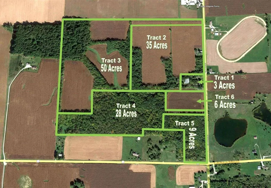 130+/- ACRES WITH CROPLAND, COUNRTY HOME, & WOODS OFFERED IN 6 TRACTS!
