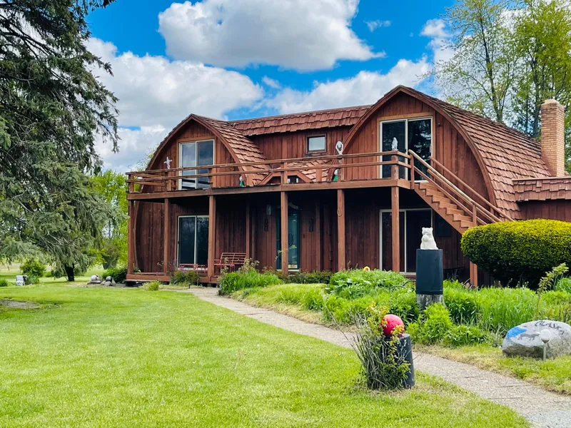 This home features 3 Bedrooms, 3 Full Baths & 2-Car Attached Garage with Workshop! Each bedroom has patio doors opening up to a Wrap-around Balcony! Lots of character throughout with the Wood Burning Fireplaces, Hand-Hewn Wood Beams, Hardwood Floors & Spiral Staircases! Home has a New Electric Furnace & A/C, Water Softener, Bladder Tank & New Garage Roof! Enjoy fishing off the Bridge leading to the Pond's Island! 36 x 26 Barn is perfect for Extra Storage, Workshop, or 4H projects! 1 Bedroom, 1 Bath Cabin on ...
