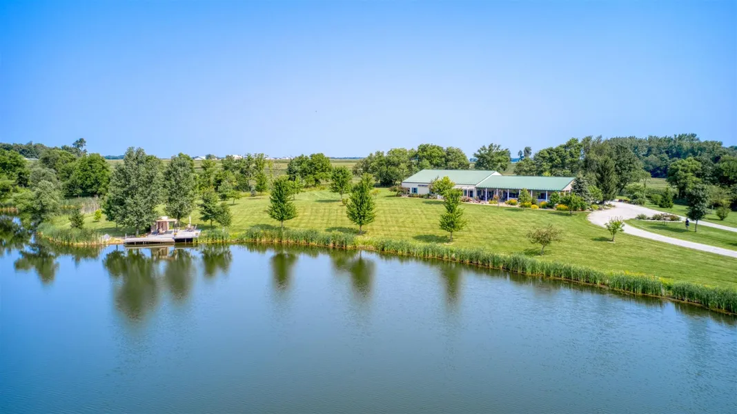 21.71 Rolling Rural Acres, include 11 Acre PRIVATE LAKE!! 2650 custom finished square feet of quality living space all on ONE LEVEL! This attractive, well appointed home offers the desirable 2846 square foot attached pole barn with designated one car bay, 26.5x11.4, appointed storage, 14x16 and 19x14 mechanical room. GEOTHERMAL, dual hot water heaters, PEX system/Manabloc system. More than just a step above the homes of like-kind construction, the three bedroom, 2 full bath home meets expectations and more. Open concept, personally designed island HICKORY kitchen, split floor plan with unbelievable master suite. You will enjoy the spacious feel and warmth of the home with 10 foot ceilings, open kitchen, dining and living combination, wood complements, bountiful natural light, inviting colors. The master suite promotes 15x17 bedroom, HIS and HERS closets, 8x16 and 9x9 respectively, the bath provides a grand jet tub space, double shower, dual 41 inch height vanity with custom hickory cabinetry and beautiful fixtures. The kitchen, the true heart of the home, impresses with the dove-tailed, soft-close solid wood cabinetry, wrapped in hand crafted WALNUT countertops, so functional in style, size and placement. The laundry/walk-in pantry is phenomenal! - 8x7.7 with the shelving from floor to 10 foot ceiling. Delight in the wrap-around covered porch over looking the the lake from the top of the hill. Thoughtfully landscaped with broad scope of perennial flowers, bushes and trees. Enjoy the possibilities of the property with raised gardens and your own potting shed. The attached pole barn fits the bill with entrance door, shelving, equipment storage, work space, utility, maneuverability. Can you imagine your own LAKE! Rip-Rap shoreline along the entire parameter! Relax at your own personal cabana at the lake! Well- established natural wet land trees and grasses surround the water. Extraordinary views, privacy and spring fed clear waters! Set your appointment today!