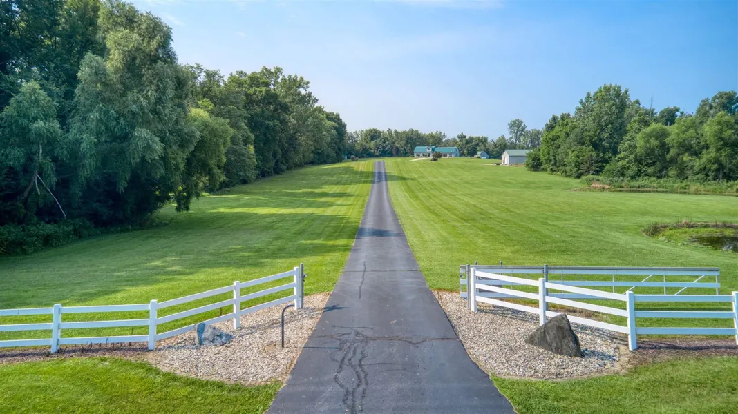 Welcome to this one of a kind country property. This gated estate is located just south of Warsaw and just west of State Road 15. This property includes 2 tracts of land totaling just over 42 acres with 2 ponds, approximately 18 acres tillable and 8 acres of woods. The 2 bedroom, 2 bath home offers over 4,600 sq ft of living area that includes a 39x31 great room, perfect for entertaining. Outside you will find the heated salt water pool and pool house with bar and bathroom for summer fun. The 54x120 Pole barn is sure to meet all of your storage needs with 2 overhead doors and also features a 1,200 sq ft efficiency apartment with washer/dryer hookup.