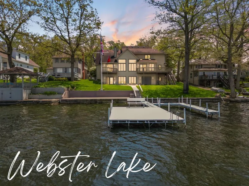 Experience the pinnacle of lakeside luxury living on the shoreline of Webster Lake known as Yellow Banks. This Webster Lake Property offers an unparalleled blend of elegance and recreational paradise. Boasting five bedrooms and 4 1/2 baths spread across nearly 5500 square feet of living space, every corner of this Lake home calls to you to relax and enjoy every moment. Step inside to discover a relaxing retreat just waiting for summertime fun. Create memories that will last a lifetime at this location. Vacation Destination or Year Round Residence, this spacious home has what you have been looking for. This home has so much to offer in its contemporary design that boasts lake views from the great room, kitchen and primary suite, not to mention the finished lower level that provides convenience of an additional cooking area, wet bar with ice maker and even projector and screen for movie ni...