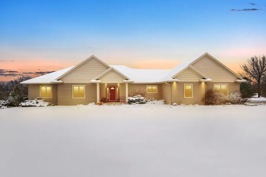 Within minutes of La Crosse and West Salem, this well cared for and beautifully updated walk out ranch is ready for you to move right in. Lots of light, nice bright and spacious rooms. Plenty of room to entertain inside as well as outside. Thoughtfully planned and constructed so it has great views of the 80+ acres of conservancy that borders this 5.2 acre parcel. Beautiful built ins and stone around the fireplace, open-concept kitchen with custom maple cabinets, large pantry, dining room, and deck to enjoy the outdoors. The main level also has a spacious master bedroom with walk in closet and 5-piece private bathroom. The lower level has a patio, large recreation room with tall windows, fourth and fifth bedrooms, full bathroom and tons of storage. Large 3.5 car garage with basement access.