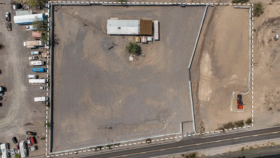 Prime commercial opportunity! This spacious lot is parallel to I-10 and offers excellent visibility, easy access, and TWO entrances for added convenience, perfect for business use or future development. Right at 3 acres, this lot is zoned General Commercial. 2 Bed, 1 Bath home (fixer-upper). Brand new electrical throughout. New AC. Fully fenced for privacy & security. 4 RV hookups, three-car garage with a brand-new roof. Additional storage buildings plus Connex box. Plenty of space for parking, storage, or expansion. Located in Quartzsite, Arizona, just off Interstate 10, a high-traffic area perfect for commercial visibility. Whether you're looking to run a business, invest, or build your dream setup, this property offers serious potential. storage means passive income for ever. great investment opportunity. Call Claudia your real-estate professional.