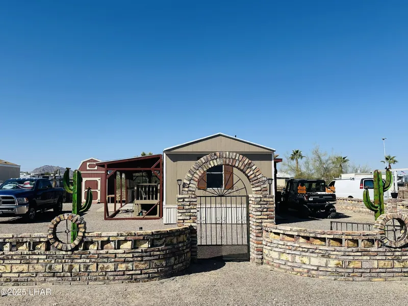 Newly furnished, 3 Bed/2 Bath home features an open floor plan with split bedrooms located in FIVE STAR RESORT CO-OP. The master bedroom features a Queen bed, full size dresser, ensuite and walk-in closet. The kitchen updates include the breakfast bar and island countertops with beautiful Colorado Beetle Kill Pine, new backsplash and paint, new dining set. Outside there is a covered enclosed patio for gathering with friends. The home also features 2 A/C units - (portable & heat pump), 2 water treatment systems, 1 wooden shed with shelves and 1 with a storage loft, electricity and interior/exterior lighting. Beautiful Mexican brick encloses 3 sides of the property and includes a welcoming archway man gate and a wrought iron swing gate. Snowbirds or full time you'll feel at home in FIVE STAR RESORT CO-OP. You'll also enjoy community events including BBQ's, Horseshoes, Holiday parties, picnics, lounging and clubhouse entertainment all year around. *2025 $900 Annual dues are paid. Furniture and appliances convey.