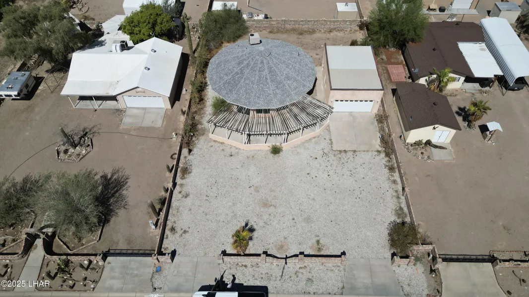 Discover a truly distinctive property! For the first time ever, 'The Round House on Rainbow Way' is on the market. This custom-designed, 15-sided residence is an undeniable landmark within Rainbow Acres. Featuring 1114 sq ft, this unique home offers 2 bedrooms and 2 baths within its open and bright interior. Abundant windows invite the stunning mountain views indoors, and the generous front patio is perfect for soaking up the Arizona sunshine. For your convenience, the home is sold AS IS with all housewares and appliances included. While this special property requires some updating and TLC after being vacant, it has been priced competitively to allow for your personal touches. A detached two-car garage provides 1/2 bath, excellent storage and parking. This is an exceptional opportunity to acquire a unique home with incredible character. Sale subject to court approval