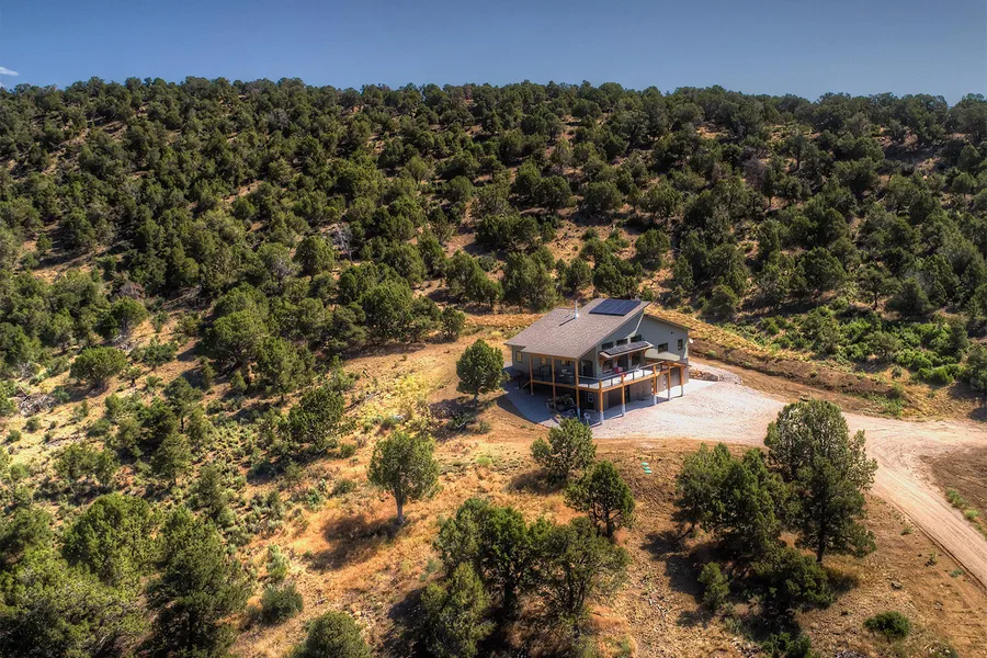Brand new high quality custom by Shepard Builders set on 18.93 acres featuring beautiful views. There is a 2nd building site available for a barn. Horses and cattle allowed. The lower level of the the home is the massive double 22' x 40' long garages. Also the laundry room is here with a 3/4 bath. Go up the custom stairs and the remainder of the home is on one level. Large great room with 12 foot ceilings and lots of glass to let in the southern sunlight and long range views. All wide plank white oak floors and a custom kitchen featuring beautiful walnut cabinets, large butcher block island and Samsung stainless appliance package. The trim and doors are all Hemlock Fir. All Anderson windows. The home was built with a solar system that provides radiant in floor heat with 7 zones including a heated garage. The living room wood stove with blower also provides heat and ambiance. Large master with exterior access has a custom bath with Emporia soaker tub, separate shower, dual lavs and a walk in closet. In addition to the 3 bedrooms there is also an office. LED lighting throughout. Large Trex deck with cable rails and steel cap and a good portion of the deck is covered. Water is provided through a high producing well with a 1,800 gallon cistern. Irrigation water available out of the TE ditch and the northern 10 acres could be cultivated to be be a producing hayfield or beautiful pasture. The western boundary is fenced. Builder is currently living in home but the home is available for immediate occupancy.