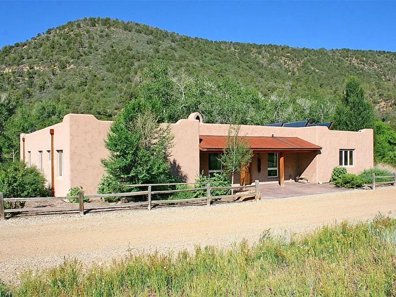 The main residence is a beautifully designed 3,200 SF, one-story Adobe home with radius corners inside and out. The sun filled space has 2 bedrooms, a large office/3rd bedroom, 2 baths, with expansive views and great privacy. Located on 43 park-like acres, with meadows, woodlands and the sounds of Cherry Creek running by.