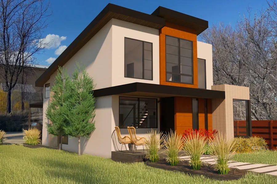 Introducing a stunning new speculative residence by Agave Group, located at 2051 East Second Avenue in Durango, Colorado, to be built. This exquisite home seamlessly blends modern design with functional living. The property spans 7,000 square feet and is zoned EN-2, allowing for an Accessory Dwelling Unit (ADU). The residence features a spacious main floor of approximately 1,700 square feet, an upper floor of 633 square feet, and a detached ADU of 550 square feet. Additional amenities include a 607-square-foot garage, a 100-square-foot front patio, and a beautifully landscaped yard designed for entertaining. The main floor boasts an open-concept living area, which includes a generous living room, a dining area, and a modern kitchen equipped with high-end appliances. The living room features high ceilings, an open stairway, a cozy fireplace, and a seamless transition to the backyard. The ...