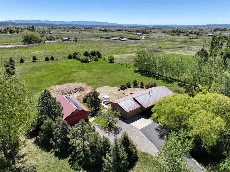 Justin D Osborn, The Wells Group of Durango, LLC, O: 970-946-3935, , Enjoy watercolor sunsets on the snowcapped La Plata mountains from the living room’s west facing large bay window. Wake up to invigorating sunrises, streaking over the HD’s as you prepare breakfast at the kitchen’s east facing awning window. This one level home on 3 irrigated acres, with an additional large, detached garage has all the functionality you need to relish the Durango lifestyle. Trees cradle the home in privacy and shade. You will have easy access to town while still enjoying elbow room and tons of secure storage for your toys and hobbies. Excellent care and maintenance radiate through the property. The driveway forks to a level outbuilding that features concrete floors, electricity and a storage loft. Attached is another 22' x 24' loafing shed providing more storage or shelter for two horses. The cherry on top is a 3.3 KW Solar array which kept the entire 2024 electric bill under $100. Mature landscaping consists of numerous trees and shrubs. Roses, forsythia, phlox, potentilla, apples, lilacs, a snowball and more take their turns blossoming with glorious color. Raised beds surrounded by wildlife fencing make for an excellent garden area. Stucco siding and Trex decking are low maintenance and attractive. The recently paved driveway eases snow removal while providing clean access and fresh curb appeal. A new culvert divides West to East sloping flood irrigation for simple diversion North and South. Indoors, Spectrum fiber optic underground internet provides amazing connectivity, ready for dependable WFH, and your favorite streaming service. The easy gas forced air heat is complemented by a cute wood stove which adds ambiance, security and comfort on snowy nights. Copious high quality custom hickory kitchen cabinets and solid wood doors add beauty and functionality to the home. Tuck in year-round with serenity and calmness derived from having a large, fenced lot all your own.