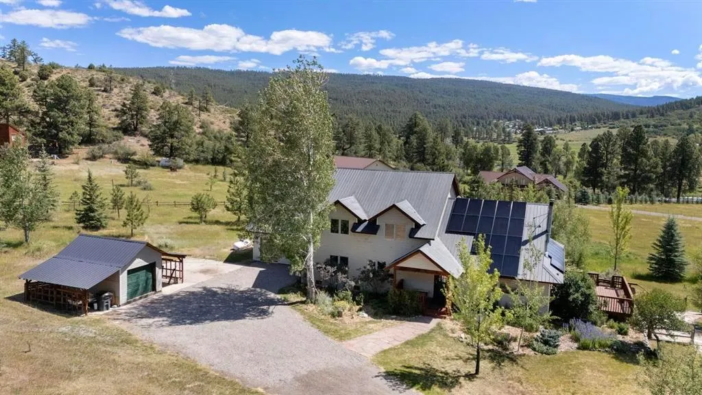 Friendly, walkable location in beautiful Pine River Ranches has something for everyone! Large home on grassy lot with mature landscaping, great barn, storage shed, pet fencing, lofty views, dependable well, really low utility costs has so many uses and amenities. Adjacent lots may possibly be purchased. Spacious Gunnar Andersen designed home has combined comfortable, welcoming spaces and light with practical amenities like rooftop solar array, high efficiency heat pump for heat and AC, infra red heating bars, 2 wood stoves, favorable solar orientation, short term rentals allowed. Energy Star appliances, EV plug-in, RV parking area. Two huge family rooms provide so many choices for use, storage, and enjoyment. Downstairs family room could be re-converted to 2 car garage if desired. Excellent floor plan takes advantage of open pattern, looking out to neighboring pastures, yard, mountain ri...
