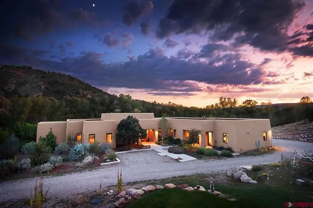 Located just South of the Durango City Limits on the Animas River sits this Southwest Contemporary home and guest home on a one of a kind piece of property at the end of the road. Not everyone who loves this property likes to fish but every fisherman loves this property! Consisting of 8.494 Acres of Cottonwoods and high mountain desert landscaping to complement the southwest style. The owner retained a deeded fishing easement on almost a mile of fantastic fishing water from a previous sale that will transfer with the property in perpetuity. The main home is approximately 2745 sq ft of livable space per the assessor, and 4000 sq ft under roof including covered porches, screened in porch and an over-sized 3 car garage. The living dining and kitchen create a very open floor plan with large beautiful south facing windows that look out to the Cottonwoods, meadow and the river. The contemporar...