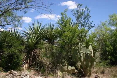This ranch is irregularly shaped with native rangeland and level to gently rolling terrain. The general flow of drainage is from south to north towards Cibolo Creek, situated just north of this ranch. The elevation ranges from a high of about 455' MSL in the far southeastern corner of the property, to a low of approximately 415' MSL at a low lying drainage way in the northeastern corner of the ranch. Soils on this ranch are comprised of Brystal, Duval and Poteet soils which consist of very fine sandy loam. Approximately 80 percent of this ranch is in virgin South Texas brush, with large mesquite, elm, hackberry and oak trees. The remaining vegetation is diverse and dense with a high canopy.