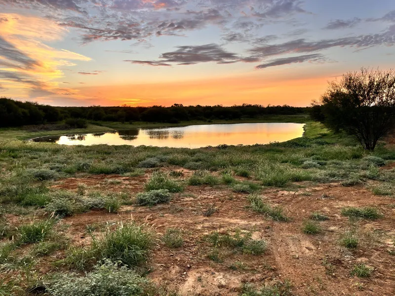 Terrain: Unique elevation changes with rolling red rock hills and red sandy loam, entire ranch in native wildlife brush with big mesquites in the creek bottoms.