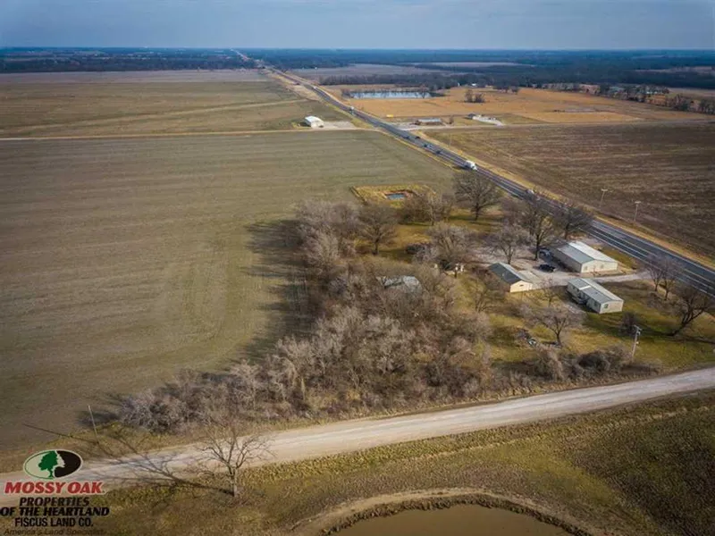 Looking for a future home site? Or a commercial location for your business? This 18.1 acre property is mostly tillable land, made up of Cherokee Silt Loam soils. This open ground is good for getting some return off the property, or could be easily converted into pasture if the new owners wanted to have some livestock. In the southwest corner of the property huge oak trees make for a great setting for a future home. All of the infrastructure is in place, a sewer lagoon, water meter, and electric meter are already on site and ready to hook up if you wanted to build. A 70'x35' shop sits out front along the highway, the shop has electricity, heat and air, large bay doors and is plumbed for an air compressor. On the property there is a also a1248 Sq. Ft. mobile home built in 1977, the mobile home is in decent shape and could be lived in if someone chose too. The mobile home could be easily removed if you wanted to, separate water and electric is set up for the existing buildings.