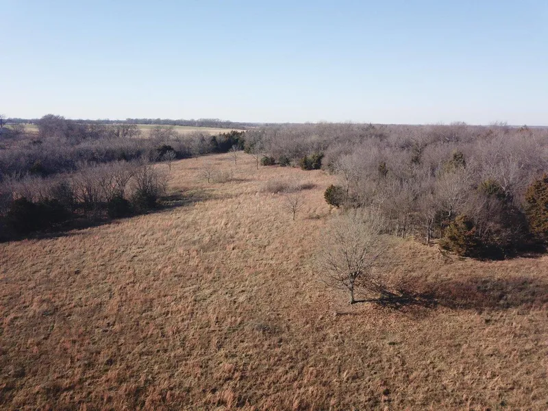The 560 contiguous acres of this farm continually rolls over and over again with every draw lined with some mature timber and some brush and scattered cedar thickets. Pretty much none of the open grassland between these draws are overgrown with invasive brush, just a few saplings ...