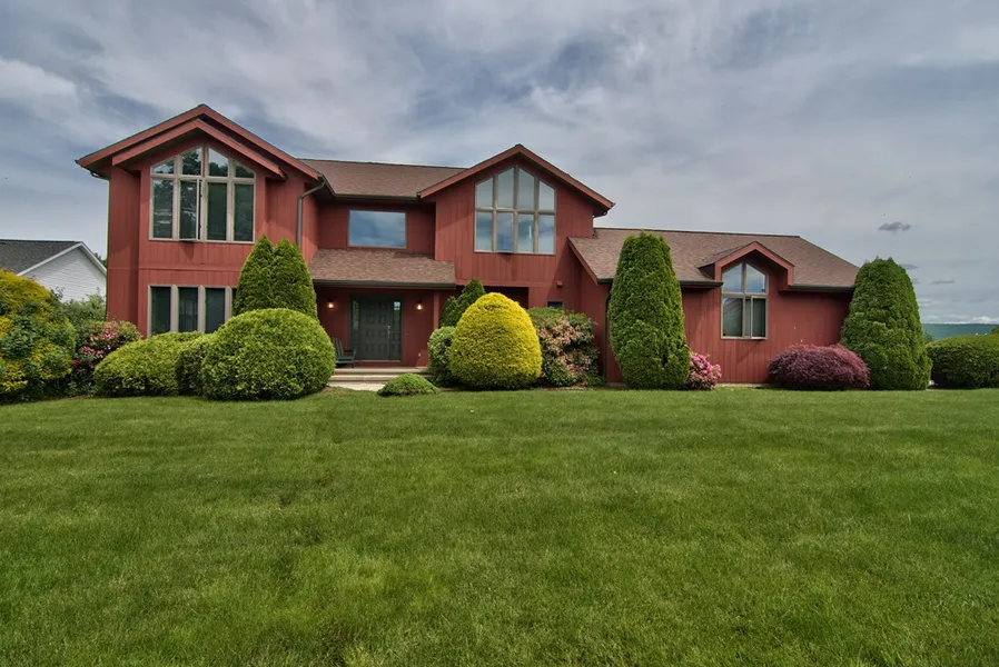 You'll love the beautiful view from this elegant two story contemporary home. Features include formal living room & dining room, large modern eat in kitchen w/ breakfast area, elegant family room. w/ cathedral ceiling & floor to ceiling marble fireplace.Master bedroom w/ cathedral ceiling, built ins & beautiful marble master bath w/ cathedral ceiling. 3 additional bedrooms on second floor and 2-3 bedrooms in lower level, lower level recreation room, 3.5 modern baths, gas hot water heat, central air, gas heat,spacious deck with gazebo. 2 car garage. Security system. Central Vac.
