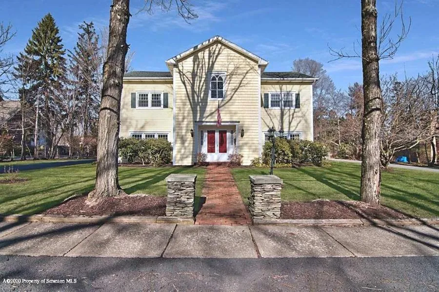 Come tour this Clarks Green 1868 historic home located in one of the best school districts. This home is located in a tree lined charming neighborhood. Features 5 bedrooms, large first floor office, den with fireplace, enclosed 3 season patio porch, 2.5 baths, stunning 2 story entry foyer, hardwood floors and beautiful woodwork. Over sized garages with parking for 5 vehicles. Home has been remodeled and updated, including the kitchen, recent roof, new vinyl siding and all new second floor energy efficient windows. All this on a beautifully landscaped lot.
