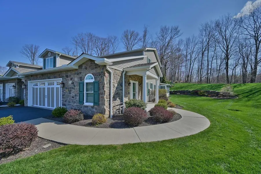Welcome home to one of South Abington Wood's most beautiful end units. Surrounded by private gardens, stone walls and rolling hills, you'll love taking in the mountain views from the paved patio or bright, airy sun room. The grand foyer leads to an open spacious floor plan. The gorgeous tiled and stainless kitchen with breakfast bar overlooks the formal eating area. Easy living w a convenient 1/2 bath, laundry center and master en suite w WIC and Spa like bath all on one floor. Guests can relax in the 2 spacious second floor bedrooms serviced by their own private bath. You'll never run out of storage space with generous walk in closets and an over sized 2 car garage with storage alcove. Tasteful stone and vinyl exterior. Economical gas heat and central air. New Roof. Nationally recognized Abington Heights Schools.