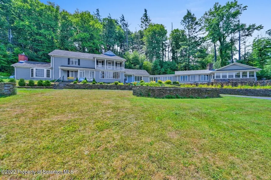 Listed by C21 Jack Ruddy Real Estate (570) 344-6724, Marieann P. Duffy-Mates (570) 468-0232: Property being sold AS IS. Seller will not make repairs. Seller will negotiate with reasonable offers.In addition to the houses, land, and acreage, this property will convey a wonderful lifestyle to the buyer. The lifestyle can be passed to many generations of your family. Walk into the beautiful foyer with built in bookcases. Straight ahead is an area to hang guests' coats and allow privacy, if needed, with small hall and half bath. The stairs leading to 2nd floor take one up to 4 bedrooms, laundry room and full bath. Of the 4 bedrooms, the master has its own full bath and walk in closet area which contains 3 closets, 2 built in drawer areas with 21 drawers and cabinets above those. Returning downstairs.To the left a spacious living area, to the right a beautiful dining room with a 16' large bay window, currently housing a dining table with seats for 8.Butler pantry is next. Equipped with sink and cupboards, closets large utility room. On the left. The kitchen is on the right. Family and guests can eat here, be entertained here marvel at the view here. Enter a winding hallway, windows down one side, leading to an in-law suite where The Great room stands. (Just before is an elevator to the basement.) There is a grand stone fireplace and vaulted ceilings. A small kitchenette with 2 burner stove, small refrigerator and sink makes leaving the suite unnecessary. A huge bedroom has its own full bath. The hallway has 4 closets and at the end is a 3-season sunroom.On the property is an additional, smaller home with attached garage. This house will need finishing. Down the road from the smaller house is a large barn and past that a tiny house, a playhouse or, perhaps, a pool house as that area would be a wonderful location for an inground or above ground pool. This property can be home for many generations of your family. Please note, all measurements are approximate and not guaranteed.