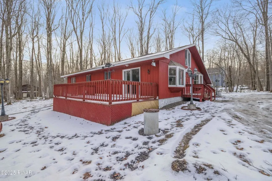Do Not Wait To See This Value-Priced, STR-Friendly Ranch on a Flat Acre Property Around the Corner from Community Beach at Beautiful Larsen Lake! Set down a circle drive at the center of the wooded property for great privacy, this home offers access to all the amenities of Big Bass Lake including gated security, and offers easy access to all the Pocono fun & major employers in Scranton/Wilkes-Barre via Route 380! Enter into open concept main space w commanding fireplace and vaulted ceilings. Easy-to-clean tile floors throughout. Bonus loft offers perfect hangout, craft room or 4th sleeping space. Three bedrooms on the main level conveniently set at the rear of the home with access to massive 4-piece bath. Nice side deck for grill n chill fun. Great Price Per Square Foot - Come See Today!
