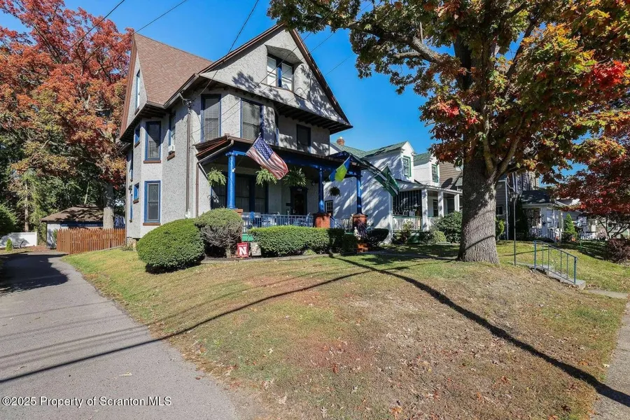 Stunning turn of the century stucco home recently renovated features 4 br, 2.5 ba, and bonus room in the attic located in the highly sought after Hollywood section of Dunmore three blocks from the school district. Features a spacious foyer with custom wood staircase, leaded stained-glass windows and original pocket doors. The main floor of the home features HWF, a large parlor for entertaining, formal dining room, modern kitchen, half bath, laundry room and TV room. Other features include 9' ceilings and large floor to ceiling windows. In addition to the grand staircase leading upstairs from the foyer, there is a second staircase off the kitchen with an electric chair lift. The exterior of the home includes 2 large covered porches, 2 car garage and fenced backyard complete with a hot tub!