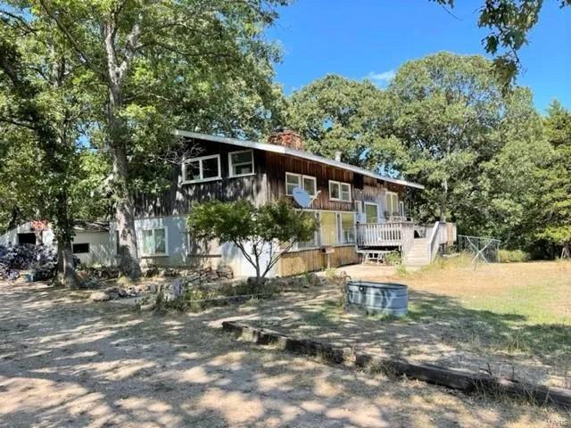 Large 1600+ Square foot home surrounded by 61.1 beautiful Ozark hills. This home features a wrap around deck, a well, is fenced and cross fenced and a good basement. There is two large Workshops and another large building that was used as a hanger for an airplane (3-buildings total). Some photos are older.