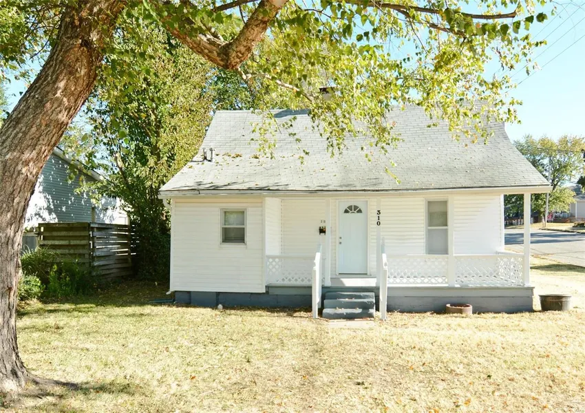 The perfect starter home! This remodeled bungalow in the city limits has just enough space. It is situated on a corner lot with a fenced in area just to the side of it. Enjoy the outside under the pagoda next to the workshop/outbuilding. The covered porch makes front porch sitting fine. There is off street parking, or if you want to open up the outbuilding, there is a area for which you could park your car (the door was replaced). Inside the kitchen lies just off the front room. The first bedroom is to the right of the living room, with a convenient door to the outside. Just off the kitchen, is the other bedroom. The kitchen has plenty of shelving, and cabinet space. The washer and dryer are conveniently located in the kitchen area, by the back bedroom.