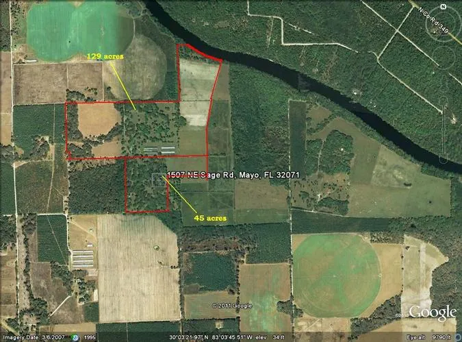 174 acres on the Suwannee River. Includes 1300sqft home. Fantastic Views, Lots of Wildlife, surrounded by majestic oaks.