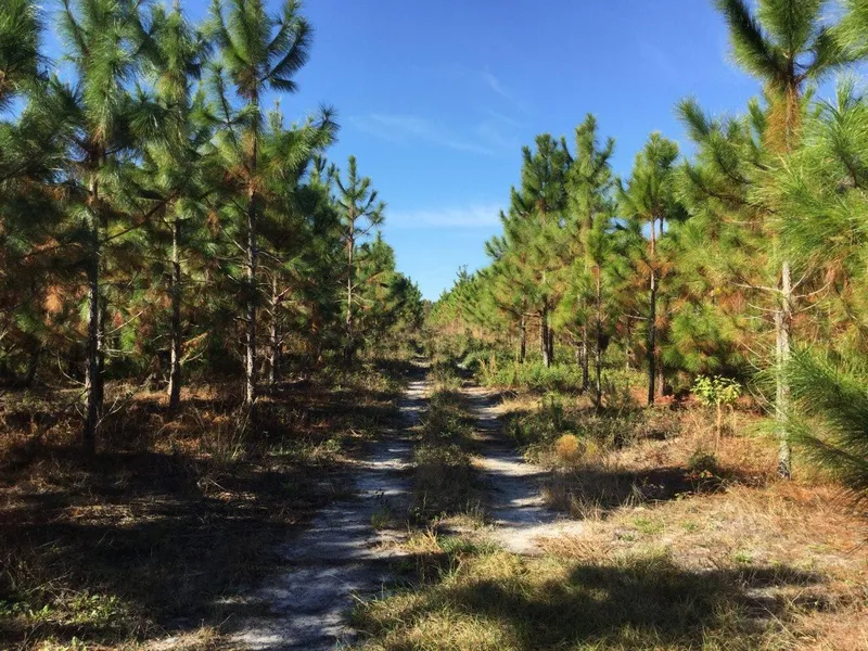 This property is planted in slash pines that are about 5 years old that are planted and maintained for pine straw production. About 8 acres are cut over.