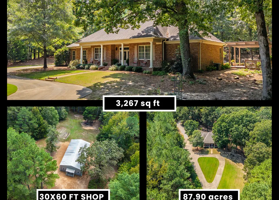 Luxury 3,267 SF custom home on 87.9 secluded acres perfect for those seeking both comfort and prime hunting right out the back door. The residence features quality craftsmanship, including Pella wood windows, heavy moldings, a 3-car garage, and a covered patio with an extended deck. The upstairs offers additional space ready for finishing. Outdoors, enjoy mature hardwoods, established trails, multiple food plots, and abundant deer and turkeys. A 30x60 shop provides ample space for equipment, ATVs, and more.