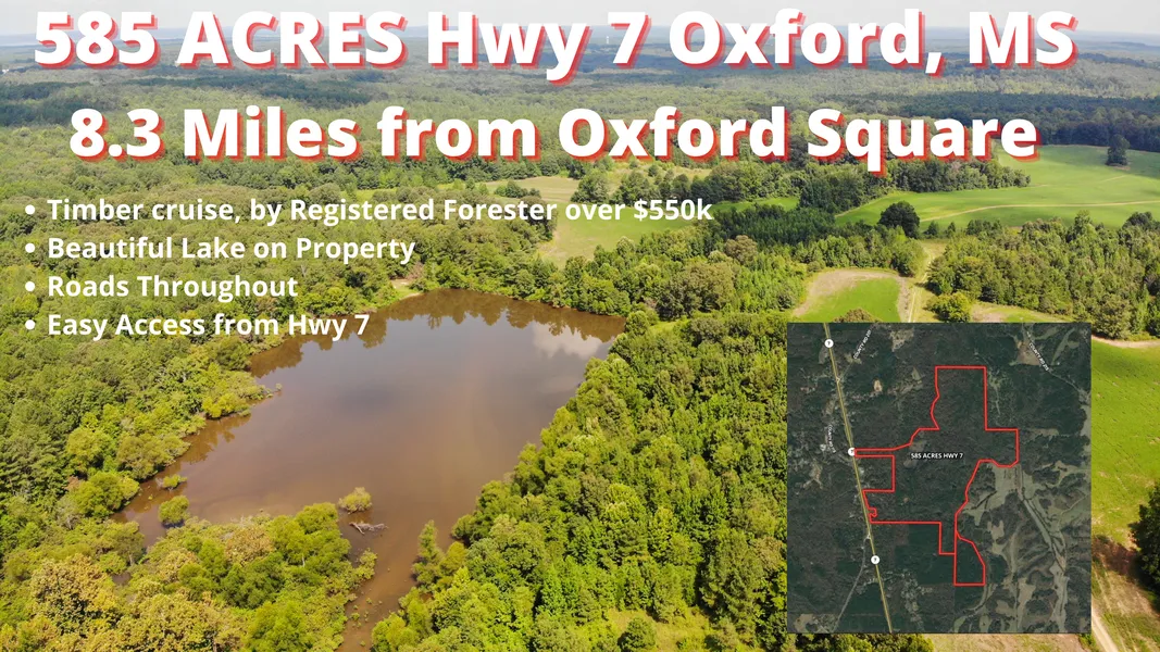 585 acres of beautiful timberland located just north of oxford on HWY 7, this property has miles of interior roads throughout the property, great deer and turkey hunting property, with endless potential! More acreage can be bought with this property since we also own the property behind it.