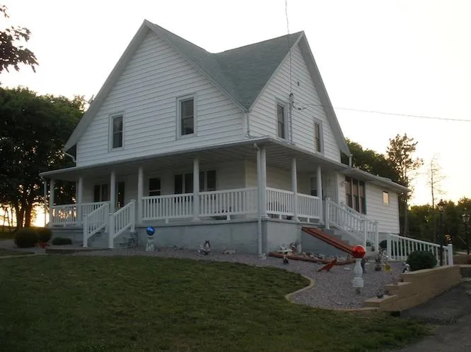 Very large, stately 4 BR National Folk house w/wraparound porch located on quiet town road off road, completely remodeled, new 2 yrs. ago 200 AMP electrical & wiring, new plumbing, furnace, water softener, water heater. Mature landscaping well maintained. This house is extremely clean and move in ready!