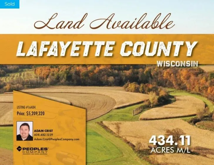 Peoples Company is pleased to present 434.11 surveyed acres of high-quality Lafayette County, Wisconsin farmland with an estimated 366.07 FSA tillable acres. The farm contains highly productive soil types including Ashdale loam, Huntsville loam, Tama loam, and Palsgrove loam. This farm has great hard surface access off Fort Defiance Road and features long straight rows with rich soils. For the past 20 plus years this farm has been farmed by using the no-till farming method to conserve soil and preserve its fertility. The southern portion of the property has excellent hunting opportunities where several Boone & Crockett class whitetails have been harvested. Otter Creek flows through the property providing year-round water sources to support a strong population of wildlife. There are several heavily timbered draws creating multiple great pinch points that would make for exceptional bowhunting spots. There are also numerous places to erect an elevated tower stand to overlook the property. Not very often does a farm of this caliber come to the market in this very strong farming area of Lafayette County. This land would be a great add-on to an existing farming operation or a smart investment for the Buyer looking to diversify their portfolio.