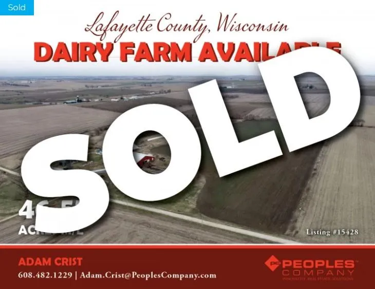 Turnkey Grade A Dairy farm available in Lafayette County, Wisconsin! The property consists of 47 gross acres m/l with approximately 30.24 FSA cropland acres. The primary soil types include Tama and Ashdale silt loam. The farm features a 66-cow stanchion barn, 150 cow free stall, commodity shed, multiple cattle sheds, and a one-million-gallon lagoon. The four-bedroom 1 bath 2,500 m/l square foot, ranch home has multiple updates including a new furnace in November and new septic in 2017.
