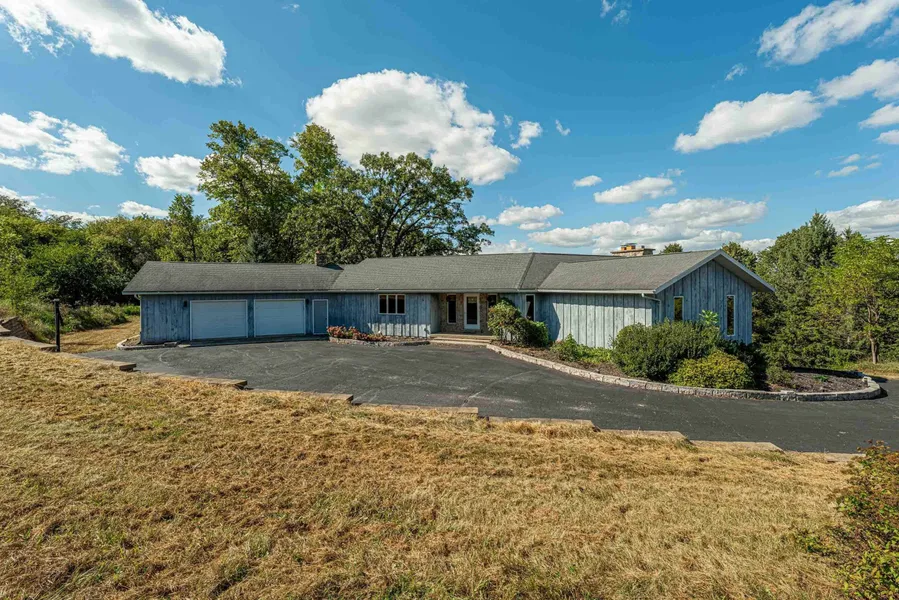 Stylish, spacious & serene! This 3 bed, 3.5 bath ranch w/ an oversized 2 car garage sits on 3.25 private acres with countryside views for miles. Inside you’ll find a welcoming foyer, vaulted great room w/stone fireplace, dining room with expansive views, large eat-in kitchen, cozy den w/fireplace, half bath, generous laundry/utility room, updated full bath & a primary suite w/ a remodeled bath. Bright spaces, built-ins, newer windows & new flooring add appeal. The walk-out LL offers 2 more bedrooms, full bath, sprawling family room & huge rec room, ready for your finishing touches, ample storage and even a cast-concrete security room/storm shelter. Bonus: new gutters w/ leaf guards, newer well, etc. Schedule your showing today!