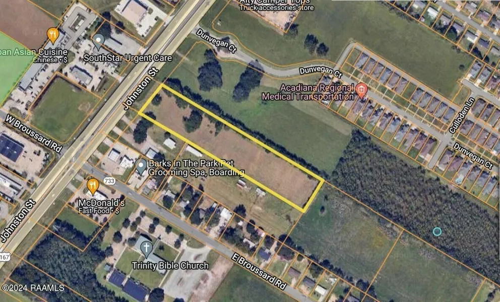 +/- 4.56 acre land tract located in a fast growing area right off of the corner of Johnston St. and E. Broussard. Property has great visibility with approx. 200 ft. of frontage on Johnston and a daily traffic count of 27,000 vehicles per day. Great opportunity for commercial, residential, or recreational development. Flood Zone X