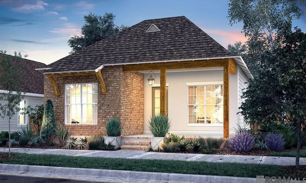 Charming Huntington B plan by Level Homes underway in The Settlement at Like Oak! The Huntington plan is a one-story home featuring 1708 sq feet of efficient living space. Enter this home from the inviting front porch and walk into the open living area. The living, dining and kitchen are all open and are separated by exposed beams. The gourmet kitchen features custom painted cabinets with 5" hardware pulls and under cabinet lighting, large center island with dual basin granite composite sink and hanging pendant lights, 3 cm Carrara Luxe countertops, matte white subway tile backsplash, stainless appliance package including a gas cooktop and built in wall oven and microwave. Bedrooms two and three are located at the front of the home and share the hall bath with built-in linen closet. The master suite is located off the rear of the home for peace and quiet and features a spa like bath with a separate soaking tub, custom tiled shower with a seamless glass enclosure, dual vanities, custom framed mirrors and walk in closet. The courtyard patio will be plumbed for gas grill. Estimated completion of March 2026, buyers can pick/approve colors and options for a limited period of time. Other lots/plans available. The Settlement at Live Oak offers beautiful homesites in the heart of Thibodaux along Bayou Lafourche and features an abundance of green spaces, a large recreational lake, luxurious community pool and pavilion, scenic ponds, local shopping, neighborhood dining and more! *The completed pictures are not of the actual home but are of the same floorplan, colors and options may vary.