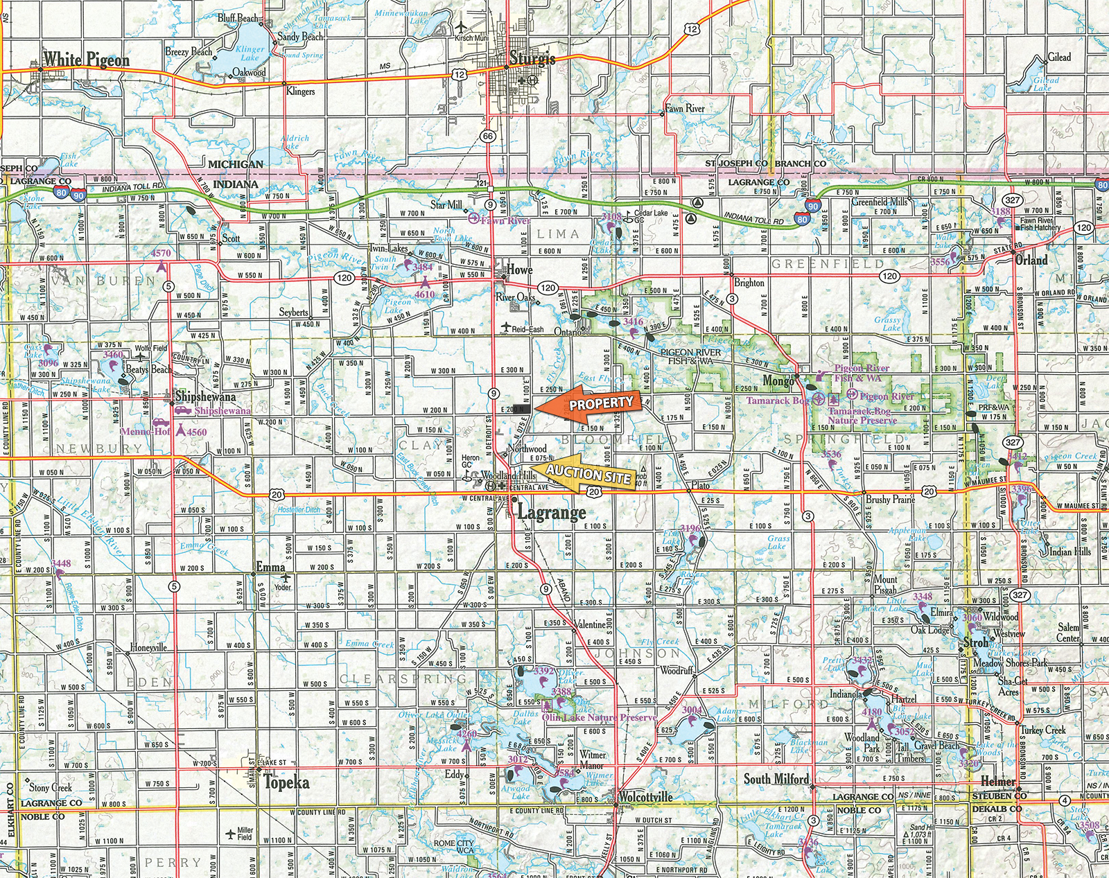 Property Located 2 miles North of LaGrange, IN on SR 9 to CR 200 N then East 1/2 mile.
