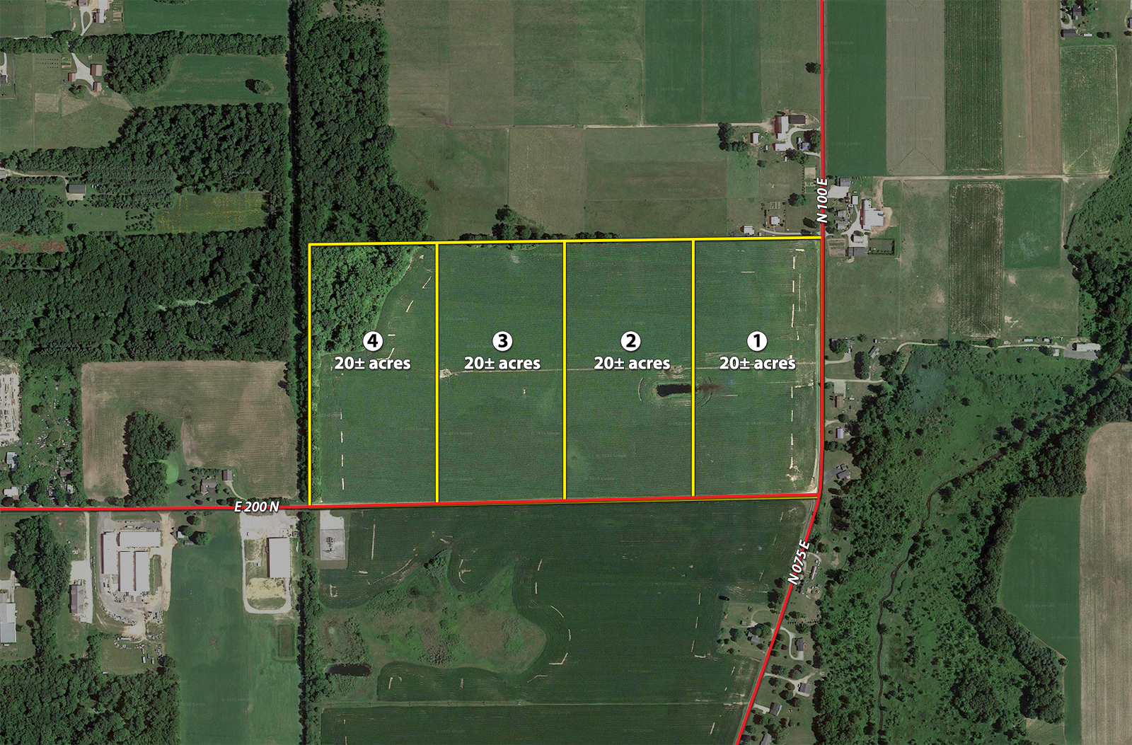 Tract 1: 20± ac all tillable will make a great building site with frontage on 100 E and 200 N.