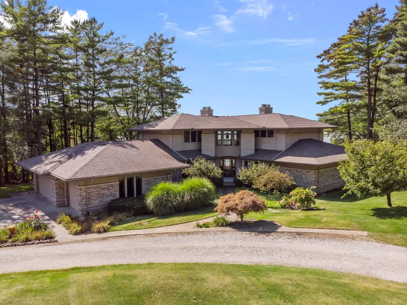 Explore this exceptional Prairie Style home featuring 363 feet of frontage on North Twin Lake. Designed and built by Terwilliger and Associates from 1995-96, this custom-built residence perfectly embodies Prairie Style architecture with open spaces, horizontal lines, and organic materials.