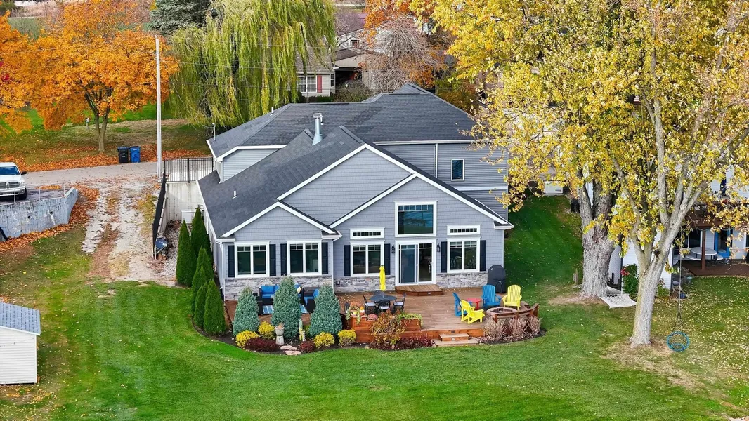Experience lakeside living at its finest on beautiful Big Long Lake! This stunning 4-bedroom, 4-bath home sits on the shores of a 365-acre all-sports lake in LaGrange County—perfect for boating, swimming, and year-round enjoyment. Completely taken down to the studs and fully remodeled in 2017, this home combines modern comfort with timeless lake charm. The spacious open-concept living area features a beautiful fireplace, creating a cozy atmosphere ideal for relaxation or entertaining guests. With plenty of sleeping space, there’s room for everyone to enjoy lake life together. A main-level office offers the perfect spot for remote work or quiet retreat. Step outside to a level lakefront lot with breathtaking views, a large deck, and a built-in fire pit—perfect for evenings by the water. Whether you’re looking for a weekend getaway or a year-round home, this property offers the perfect blend of comfort, style, and waterfront fun!